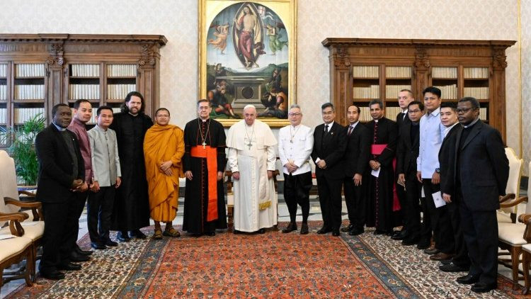 „Kedves buddhista barátaim” – köszöntötte Ferenc pápa vendégeit, kifejezve, hogy hálás látogatásukért, amelynek célja, hogy a vallások közötti együttműködést jobbítsák. Egy olyan időszakban, amikor az emberiség családja és a föld súlyos fenyegetésekkel néz szembe, a kambodzsai buddhisták helyesen választották találkozójuk témájául az ökológiai megtérés feladatát. Ez egyrészt pozitív jele annak, hogy világunkban egyre jobban törődnek a föld, a közös otthonunk jólétével, másrészt pedig rámutat, mivel tudnak hozzájárulni országuk társadalmi és gazdasági újjáépítéséhez az elmúlt évtizedek társadalmi-politikai válságai után.