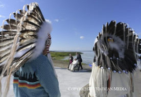 Az evangélium hirdetéséhez viszont hitelesnek kell lennünk. Ez a második kihívás: a tanúságtétel. Az evangéliumot akkor hirdetjük hatékonyan, amikor az életünk beszél, amikor feltárja azt a szabadságot, amely szabaddá tesz másokat, azt az együttérzést, amely nem kér cserébe semmit, azt az irgalmasságot, amely szavak nélkül beszél Krisztusról. Az Egyház Kanadában, miután megsebezte és elkeserítette az egyes gyermekei által elkövetett gonoszság, új útra lépett. Különösen a kiskorúak és kiszolgáltatott emberek elleni szexuális visszaélésekre gondolok, azokra a bűncselekményekre, amelyek határozott fellépést és visszafordíthatatlan küzdelmet igényelnek. Szeretnék veletek együtt még egyszer bocsánatot kérni minden áldozattól. A fájdalom és a szégyen, mely eltölt bennünket, legyen alkalom a megtérésre, „soha többé!” És a gyógyulásra, az őslakos testvéreinkkel és nővéreinkkel való kiengesztelődés útjára gondolva,