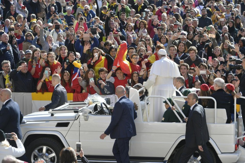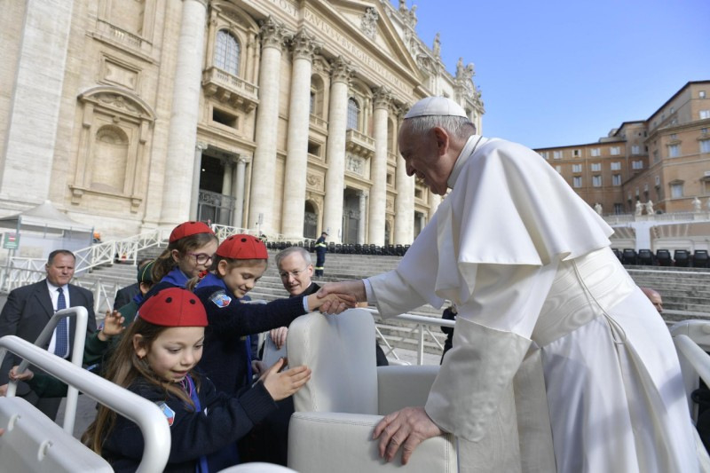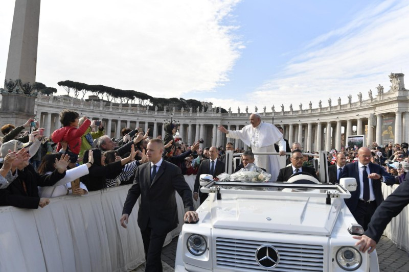 Folytatjuk a Miatyánkról szóló katekézist, és ma elérkeztünk az utolsó előtti kéréshez: „Ne hagyj el bennünket a kísértésben” (Mt 6,13); egy másik fordítás pedig azt mondja: „Ne engedd, hogy kísértésbe essünk!” A Miatyánk derűsen kezdődik: felébreszti bennünk a vágyat, hogy Isten nagy terve megvalósulhasson közöttünk. Aztán az életre vet egy pillantást, és annak kérésére késztet, amire nap mint nap szükségünk van: ez a „mindennapi kenyér”. Ezt követően az ima a másokkal való kapcsolataink felé fordul, amelyeket gyakran beszennyez az önzés: bocsánatot kérünk, és vállaljuk, hogy mi is megbocsátunk. Ezzel az utolsó előtti kéréssel azonban a mennyei Atyával folytatott párbeszédünk úgymond a dráma mélyére hatol, vagyis arra a területre, ahol szabadságunk és a gonosz fondorlatai állnak szemben egymással.