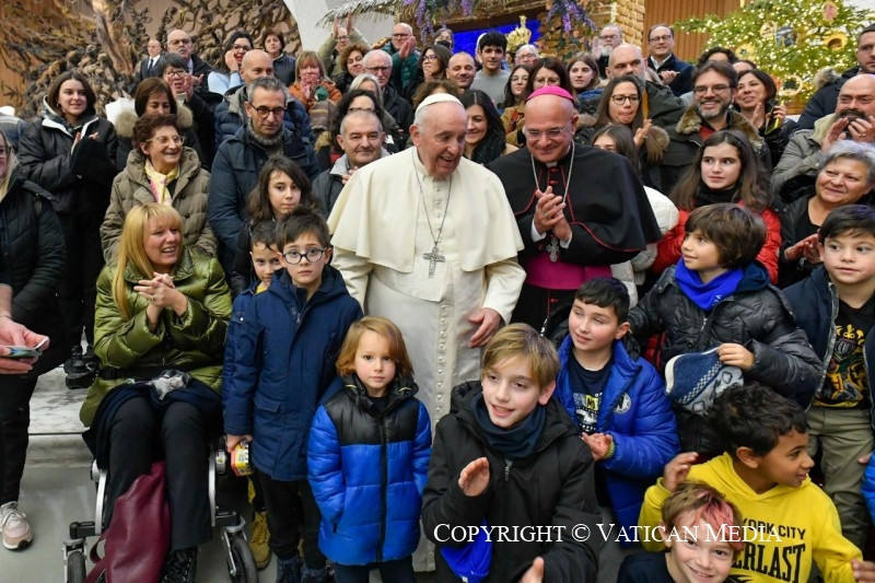 Az előbb a Gyermek Jézust említettük: gondoljunk a sok ukrajnai gyermekre, akik szenvednek, sokat szenvednek a háború miatt. A gyermekséget magára vállaló Isten ünnepén gondoljunk az ukrán gyermekekre! Amikor itt találkoztam velük, a többségük nem mosolyogott, és ha egy gyermek elveszíti képességét a mosolygásra, az súlyos dolog. Ezek a gyerekek magukon hordozzák ennek az embertelen, kegyetlen háborúnak a tragédiáját.
