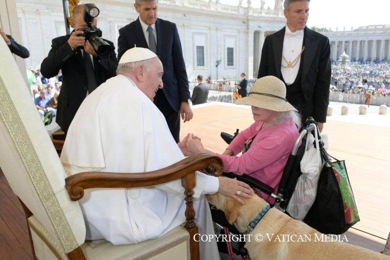 Pontosan a keresztény közösségnek kell gondoskodnia az idősekről: a rokonoknak és a barátoknak is, de a közösségnek is. Az időseket sok embernek kell látogatnia, együtt és gyakran! Sosem szabad elfelejtenünk az evangéliumnak ezt a három sorát. Ma különösen, hogy az idősek száma jelentősen megnőtt, a fiatalokhoz képest is, mert ebben a demográfiai télben kevesebb gyermek születik, sok az idős és kevés a fiatal. Felelősséget kell éreznünk azért, hogy meglátogassuk a gyakran egyedül élő időseket, és imáinkban az Úr elé vigyük őket. Maga Jézus fog megtanítani arra, hogyan szeressük őket. „Egy társadalom akkor igazán befogadó az élet iránt, ha felismeri, hogy az élet értékes idős korban, fogyatékosságban, súlyos betegségben és kihunyóban is” (Üzenet a Pápai Életvédő Akadémiához, 2014. február 19.). Az élet mindig értékes. Jézus, amikor meglátja a beteg idős asszonyt, megfogja a kezét, és meggyógyítja: ugyanazzal a mozdulattal támasztja fel a meghalt kislányt: kézen fogja, felállítja, úgy gyógyítja meg, hogy talpra állítja. Jézus ezzel a gyengéd, szerető gesztussal adja az első leckét tanítványainak: az üdvösséget a beteg emberre való odafigyelés által lehet hirdetni, jobban mondva, közvetíteni; és az asszony hite felragyog, hálásan a föléje hajoló Isten gyengédségéért. Most visszatérek egy olyan témához, amelyet már többször említettem ezekben a katekézisekben: úgy tűnik, hogy a selejtezés mostani kultúrája kiirtja az időseket. Igen, nem megöli őket, hanem társadalmilag eltünteti őket, mintha teher lennének, akiket magunkkal kell cipelni: jobb elrejteni őket. Ez saját emberségünk elárulása, a legocsmányabb dolog, szelektálás az életek között hasznosság, fiatalság szerint…, és nem fogadjuk el az életet úgy, ahogy jön, az öregek bölcsességével, az öregek korlátaival. Az öregek sokat adhatnak nekünk: náluk van az élet bölcsessége. Sok mindenre taníthatnak bennünket: ezért kell megtanítanunk a gyerekeket is arra, hogy viseljék gondját nagyszüleiknek, látogassák nagyszüleiket. A fiatalok és a nagyszülők, a gyermekek és a nagyszülők közötti párbeszéd alapvető fontosságú a társadalom számára, alapvető fontosságú az Egyház számára, és alapvető fontosságú az élet egészségének szempontjából. Ahol nincs párbeszéd fiatalok és idősek között, ott hiányzik valami, és egy múlt nélküli, azaz gyökerek nélküli nemzedék nő fel.