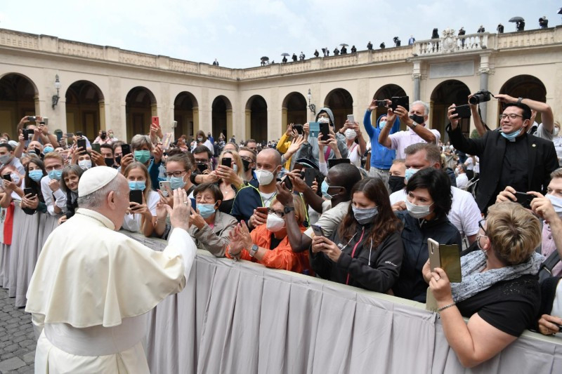 Mindenkinek hozzá kell járulnia, mindenkinek! Az ilyen részvétel segít megelőzni és kijavítani a globalizáció és az állami cselekvés bizonyos negatív aspektusait, ahogyan ez a világjárványban sújtott emberek gondozása esetében is történik. Ösztönözni kell ezeket az „alulról induló” hozzájárulásokat. Milyen jó látni az önkéntesek munkáját a válság során! Az önkéntesek minden társadalmi rétegből jönnek, vannak önkéntesek a leggazdagabb családokból, és vannak a legszegényebb családokból. De mindenki, mindenki együtt, hogy kilábaljunk a válságból. Ez a szolidaritás, ez a szubszidiaritás elvének megvalósulása.