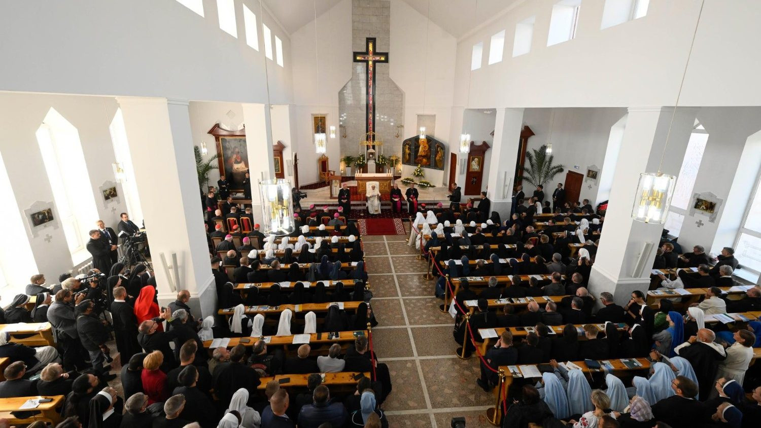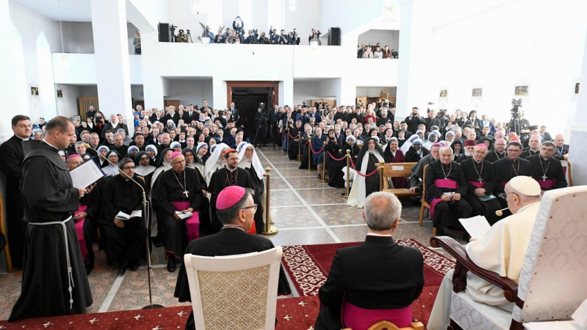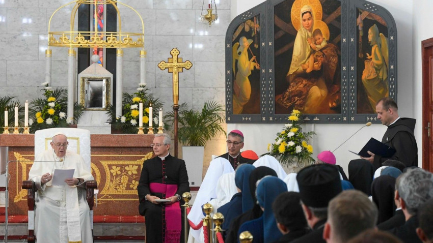 Örülök, hogy itt lehetek köztetek, hogy üdvözölhetem a Közép-Ázsiai Püspöki Konferenciát, és hogy találkozhatom egy olyan egyházzal, amely sokféle arcból, történetből és hagyományból áll, de mindannyiukat egyesíti a Krisztus Jézusban való egyetlen hit. Mumbiela Sierra püspök úr, akinek köszönöm üdvözlő szavait, azt mondta: „Legtöbbünk külföldi”; ez igaz, mert különböző helyekről és országokból származtok, de az Egyház szépsége ez: egy család vagyunk, amelyben senki sem idegen.