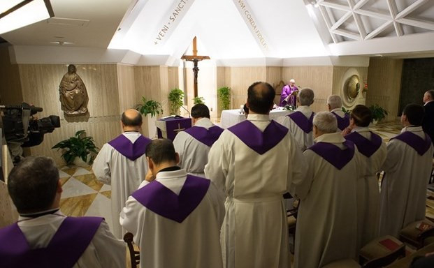 Az Úr adja meg a munka örömét nekünk, az anyaegyház termékenysége fölött örvendező keresztényeknek, és őrizzen meg bennünket attól, nehogy a szomorú, türelmetlen, bizalmatlan és szorongó keresztények állapotába zuhanjunk, akiknek mindenük tökéletesen megvan az egyházban, csak éppen nincs „gyermekük”. Az Úr vigasztaljon meg bennünket az anyaegyház vigaszával, vigasztaljon bennünket az Úr gyengédségével – zárta kedd reggeli homíliáját Ferenc pápa.