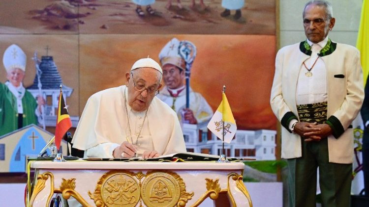 Ahol Ázsia és Óceánia összeér és bizonyos értelemben találkozik Európával – utalt Kelet-Timor történelmére a pápa –, egy hegyekkel, erdőségekkel, síkságokkal teli föld, melyet csodálatos tenger ölel körbe: ide érkezett utazása harmadik állomásaként Ferenc pápa.