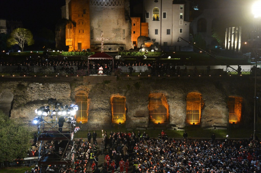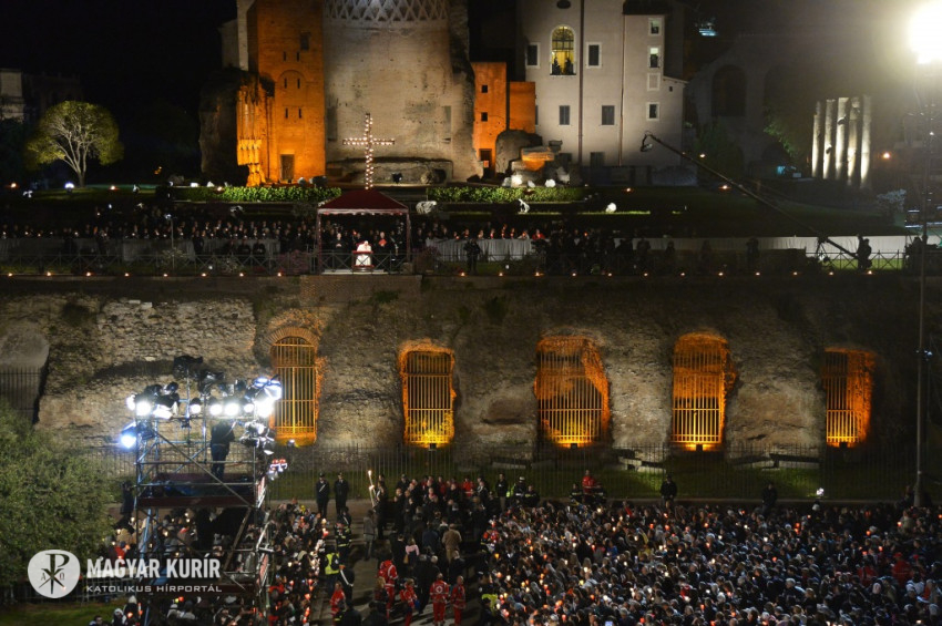 Isten Jézus keresztjére helyezte bűneink egész súlyát: az összes igazságtalanságot, amelyet minden Káin elkövetett, Júdás és Péter árulásának keserűségét, az erőszakosok hiúságát, a hamis barátok önteltségét. Olyan súlyos volt ez a kereszt, mint a magukra hagyott személyek éjszakája, súlyos, mint szeretteink halála, súlyos, mert magába foglalja a gonosz aljasságát. Ugyanakkor egy dicsőséges kereszt, mint egy hosszú éjszaka hajnala, mert jelképezi Isten egész szeretetét, amely nagyobb a mi bűneinknél és árulásainknál – mondta Ferenc pápa a nagypénteki keresztúti ájtatosság végén.