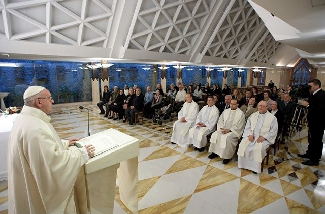 Végül pedig az imádság: imádkozzunk ma azért, hogy az Úr adja meg nekünk a kegyelmet, és ravasz keresztények legyünk, hogy meglegyen bennünk ez a keresztény életrevalóság. Ha van valami, amit egy keresztény nem engedhet meg magának, az a naivitás – jelentette ki Ferenc pápa. – Mi, keresztények egy kincset hordozunk magunkban: ez a kincs a Szentlélek. Őriznünk kell. A naiv ember hagyja, hogy elrabolják tőle a Szentlelket. Egy keresztény nem engedheti meg magának, hogy naiv legyen. Kérjük a keresztény ravaszság és a keresztény szimat kegyelmét. Jó alkalom ez arra is, hogy imádkozzunk a korrupt emberekért. Szoktunk arról beszélni, hogy a szmog árt a környezetnek, de létezik a társadalmi korrupció szmogja is. Imádkozzunk a korruptakért: szegények, találják meg a kiutat abból a börtönből, amelybe be akartak lépni – fohászkodott végül Ferenc pápa.