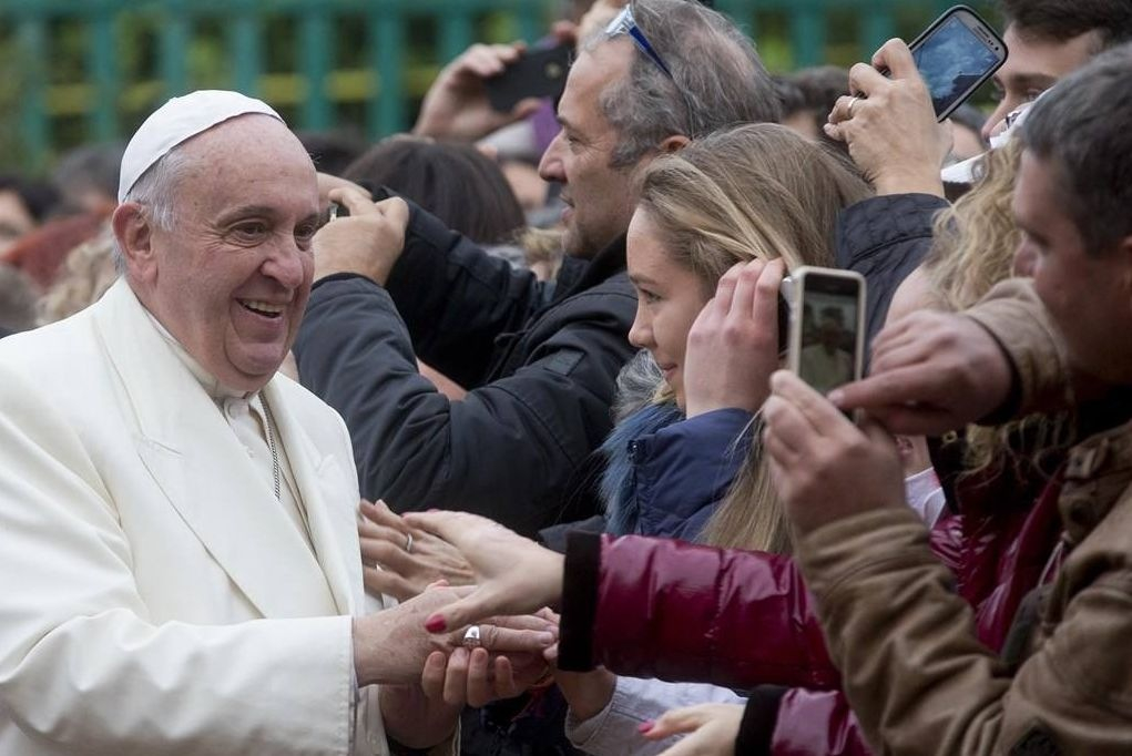 A hívek hatalmas transzparenssel köszöntötték templomuk előtt a Szentatyát 78. születésnapja alkalmából, mely december 17-ére, szerdára napra esik. A plébánia épületében a pápa a helyi oblátusok által működtetett idősek otthonát is meglátogatta: „Mi vagyunk a múlt század, és ők a jövő” – mondta nekik derűsen a pápa, utalva arra a nyolcvan házaspárból álló csoportra, akiknek a gyermekeit a Szent József-plébánián az elmúlt évben keresztelték meg. Ferenc pápa a szentmise előtt beszélgetésbe elegyedett az egyes plébániai csoportokkal. Visszaemlékezett a hetven évvel ezelőtti elsőáldozására, és elmondta, hogy miután az elsőáldozásra őt felkészítő nővér 1987. október 17-én meghalt, az elhunyt mellett imádkozott, mert ő vezette el Jézushoz.