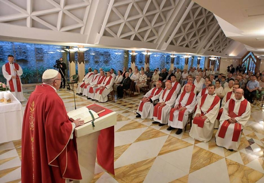 „Amikor Jézus azt mondja: »Atyám szüntelenül munkálkodik, ezért én is munkálkodom« (Jn 5,17), a törvénytudók megbotránkoztak benne, és meg akarták ölni emiatt. Miért? Mert Isten dolgait nem tudták ajándékként fogadni! Csak úgy, mint igazságosságot! Ezek pedig a parancsolatok. »Nincs is sok belőlük, csináljunk többet!« – gondolták. És ahelyett, hogy megnyitották volna a szívüket az ajándék előtt, bezárkóztak, és menedéket kerestek a parancsolatok merevségében, melyek számát megszaporították egészen ötszázig, vagy még tovább…! Nem tudták elfogadni az ajándékot, amit pedig csak szabadsággal lehet befogadni. Ezek a merev emberek féltek a szabadságtól, amit az Isten ad nekünk, féltek a szeretettől” – hangsúlyozta a pápa.