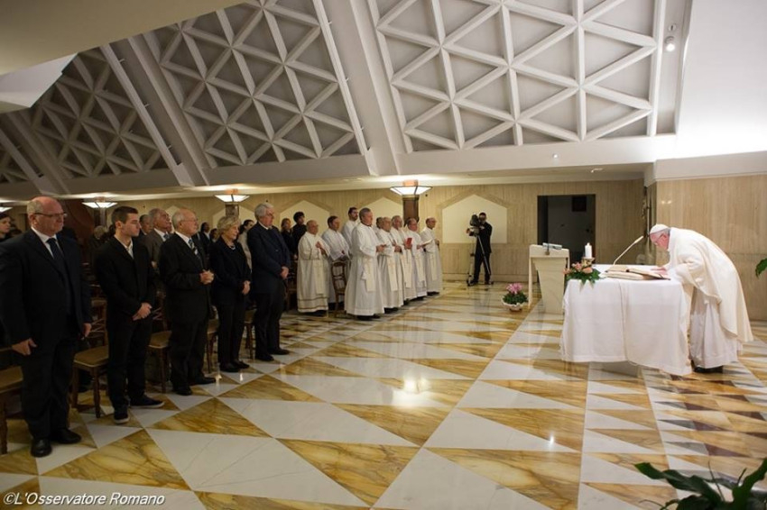 A római magyar közösség képviselői, november 11-én, Németh László olaszországi magyar főlelkész vezetésével részt vehettek Ferenc pápa reggeli szentmiséjén a Szent Márta-ház kápolnájában.