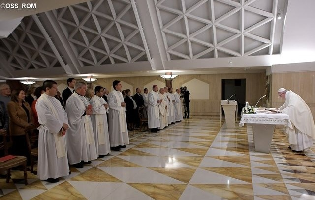 Jézus arra hív bennünket, hogy a jót alázattal tegyük. Minden jót megtehetünk, csak tegyük alázatosan, ahogy Jézus. Mindaz, ami nem a Jézus által szerzett megváltásból fakad, hanem saját magunkból és a mi biztonságunkból, nem szolgál semmire. A megváltás az alázat és a megalázkodás útján jön el, mert nincs alázat, mely nem megalázkodásból eredne, ahogy ezt a kereszten megalázkodott Jézusnál látjuk. Kérjük az Urat, segítsen, hogy ne fáradjunk bele ezen az úton járni, hogy tudjuk elvetni a látszatvallásosságot, a színlelést! Haladjunk előre csendesen, tegyük a jót ingyen, ahogy azt ingyen kaptuk már a belső szabadságunkkal. Az Úr az, aki megőrzi bennünk ezt a belső szabadságot! – zárta kedd reggeli szentmiséje homíliáját Ferenc pápa.