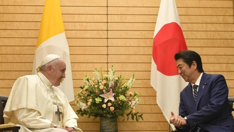 Ferenc pápa 2019-ben Japánba tett apostoli útja során találkozott Abe Sinzó miniszterelnökkel.