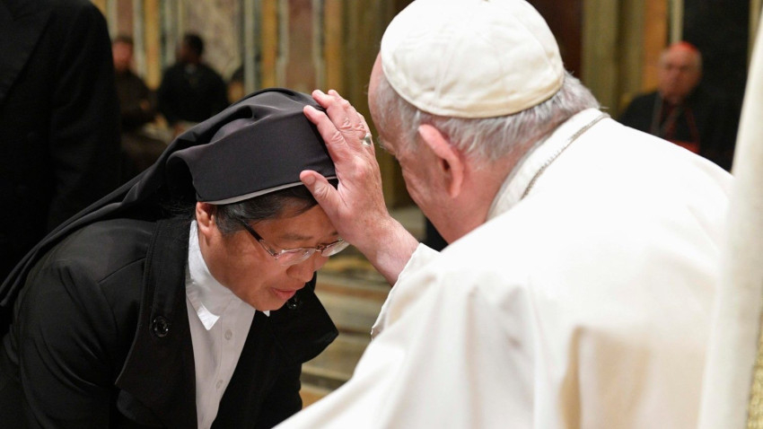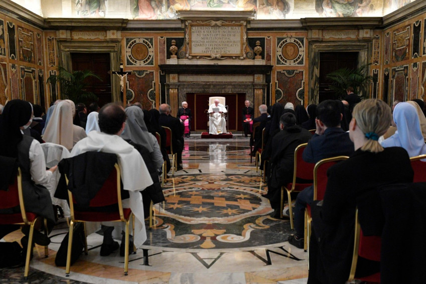 A pápa óva intett a csüggedéstől a szerzetesi hivatások számának folyamatos csökkenése és a szerzetesek elöregedése láttán, ehelyett arra buzdította a jelenlévőket, hogy bízzanak az Úrban és a Szentlélekben. „A vereség és a pesszimizmus szelleme nem keresztény” – mutatott rá.