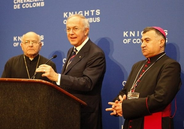 Carl Albert Anderson (középen), a Kolumbusz Lovagok főlovagja