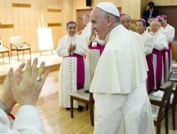 A profetikus evangéliumi tanúságtétel sajátos kihívásokat tartogat a koreai Egyház számára attól a pillanattól fogva, hogy egy olyan társadalomban él és működik, amely virágzik, de egyre szekularizáltabb és materialistább. Ezen körülmények között a lelkipásztori kisegítők annak a kísértésnek vannak kitéve, hogy nemcsak hatékony kezelési, tervezési és szervezési modelleket vesznek át az üzleti világból, hanem olyan életstílust és mentalitást is, amit a siker és még inkább a hatalom világi kritériumai vezetnek a Jézus által az Evangéliumban hirdetettek helyett – zárta a koreai püspökökhöz intézett beszédét Ferenc pápa.