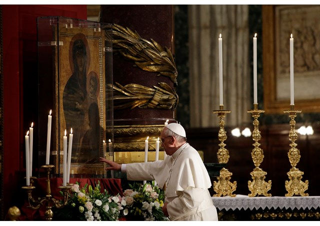 A pápának immár szokásává vált, hogy apostoli útjai előtt, illetve látogatásairól visszatérve lerója tiszteletét a rómaiak által nagy becsben tartott Szűz Mária-ikon előtt.