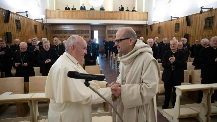 Ferenc pápa elmondta, hogy e nagyböjti lelkigyakorlat napjaiban nagyon sokat gondolkodott a Gaudium et Spes kezdetű zsinati dokumentumon, amellyel szemben ma is nagy ellenállás mutatkozik. „Időnként olyannak láttalak – mondta a bencés apátnak –, mint aki azzal a bátorsággal rendelkezik, mint a zsinati atyák, amikor aláírták a Gaudium et Spes kezdetű dokumentumot. Nagyon köszönöm. Imádkozz értünk, mert mindannyian bűnösök vagyunk, de haladni akarunk előre, az Urat szolgálva.”