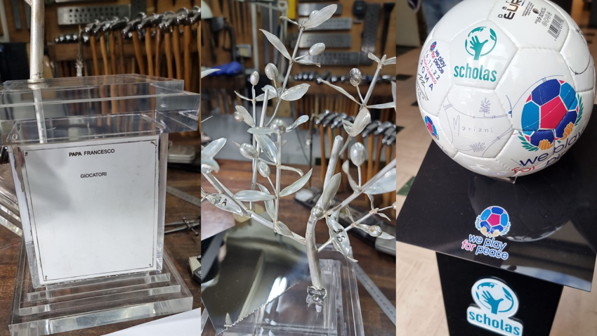 Adrian Pallarols, Ferenc pápa közeli barátja – akit a Szentatya ezüstműveseként is emlegetnek – készítette a trófeát a mérkőzésre. A kezdeményezés kapcsán a Vatikáni Rádiónak nyilatkozva elmondta: a pápa eskette őt és feleségét és keresztelte meg gyermekeiket. A hetedik generációs ezüstműves rendszeresen találkozott Buenos Aires érsekével; teológiáról és művészetről beszélgettek, apácák által kínálta tej és sütemények mellett. Még 2002-ben, a Buenos Aires-i székesegyház restaurálása során ismerkedtek meg. 2005-ben Bergoglio érsek felkérésére kelyhet készített, amelyet XVI. Benedek pápának ajándékoztak. Adrian Pallarols készítette a korábbi békemérkőzések trófeáját is, illetve azt a kelyhet is, amelyet a Szentatya a 2015-ös New York-i szentmisén használt a Madison Square Gardenben.