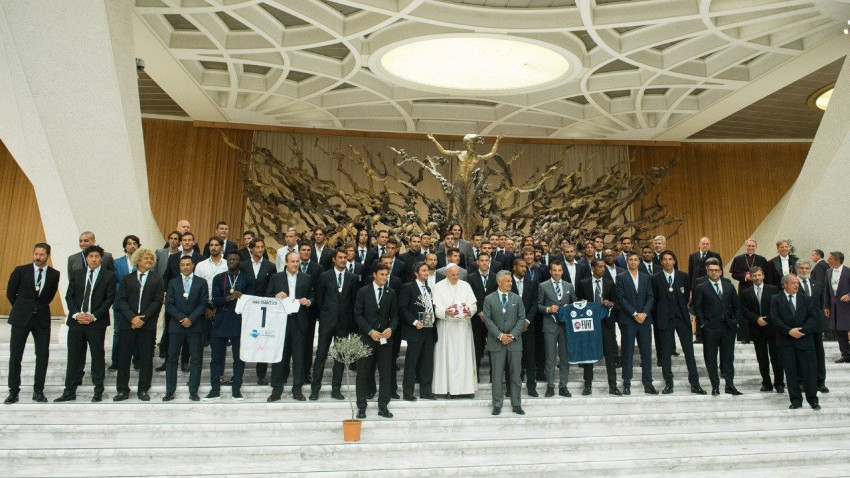 November 14-én, hétfőn este a római Olimpiai Stadionban immár harmadik alkalommal rendezték meg a békéért felajánlott futballmérkőzést a Scholas Occurrentes Pápai Alapítvány szervezésében, Ferenc pápa támogatásával és áldásával. A meccs előtt a pápa a vatikáni VI. Pál teremben köszöntötte a játékosokat, a szervezőket és hozzátartozóikat. A „Mi a békéért játszunk” mottójú mérkőzésen a futballvilág számos fontos szereplője vett részt.