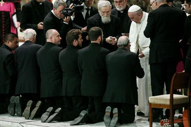 A terem teljesen megtelt a Neokatekumenális Út karizmatikus egyházi mozgalom képviselőivel, akik az alapító, Kiko Argüello vezetésével érkeztek. A misszionárius családok felálltak, amikor bejelentették célállomásukat. „Áldom az Urat ezért” – mondta Ferenc pápa a tapsvihar közepette, majd felhívta a figyelmet egy kockázatra. Az ördög megkísérthet minket, hogy azt higgyük, talán mi jobbak vagyunk másoknál. Olyan kísértés ez, amely a legszebb karizmákba is belopakodhat. Minden karizma Isten kegyelme, hogy növelje a szeretetközösséget. A karizma azonban elvesztheti erejét, ha bezárkózik vagy büszkévé válik, amikor meg akarja különböztetni magát másoktól. Ezért óvni kell. Óvjátok karizmátokat! – buzdított a Szentatya. Hogyan? Követve a kijelölt utat: az alázatos és engedelmes egységet.