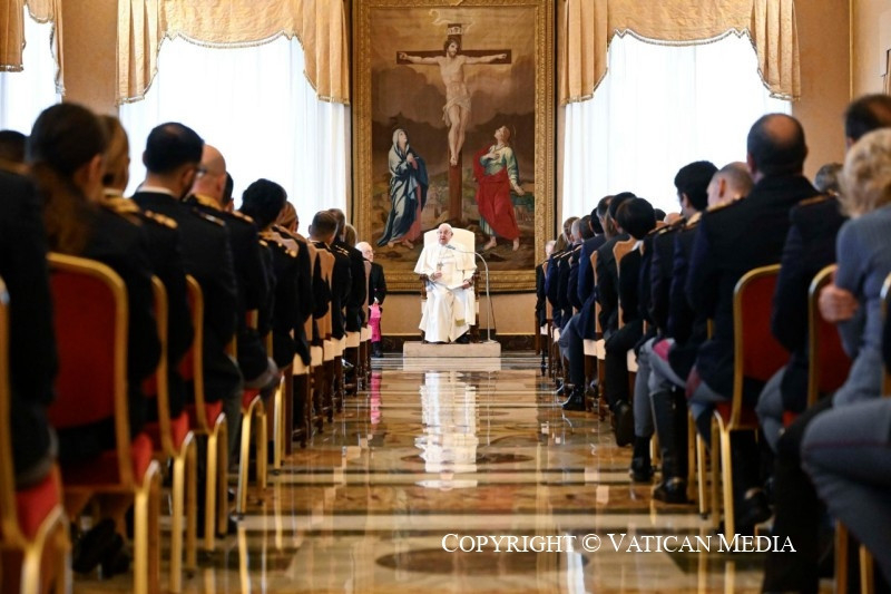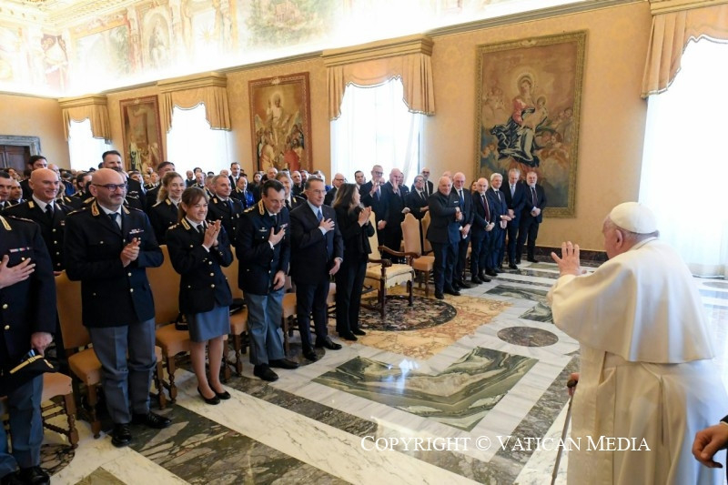 A bűntől megsebzett emberek nélkülözhetetlenné teszik a közbiztonsági erők munkáját az egész közösség javának szolgálatában, amelyek megfelelő eszközökkel rendelkeznek ahhoz, hogy megakadályozzák a bűncselekményeket és jogsértéseket. Ferenc pápa szerint méltán lehetnek büszkék arra, hogy a közjó szolgálatában élnek és cselekednek, miközben alázatosak maradnak, mert ez lehetővé teszi számukra annak a felismerését, hogy segítségre, áldásra, megváltásra szorulnak, és hogy szívüket nyitva tartsák Isten kegyelme előtt.