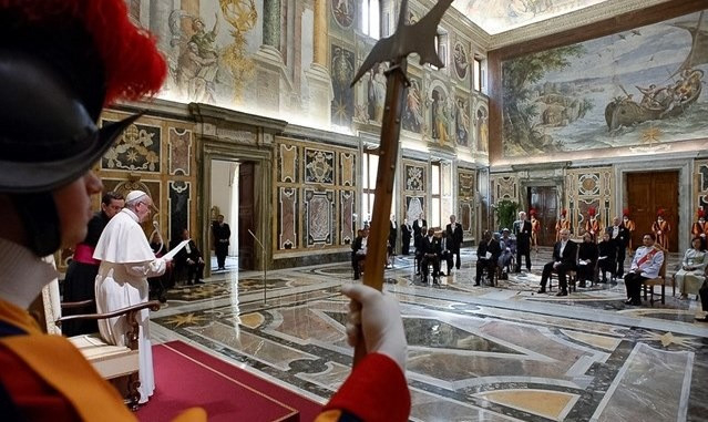 „A megoldás sokféle szempontját kell együttesen figyelembe venni, melyek a migránsválság mélyén meghúzódnak, főként abban a tekintetben, hogy a fegyveres harcban álló feleket megfosszuk a fegyverektől, miként véget kell vetni az emberkereskedelemnek és a kábítószer-terjesztésnek is, mely az előbbi kísérőjelensége. A béke nevében segítenünk kell azokat a kezdeményezéseket, melyek a lakosságot a saját hazájában tartják, ugyanakkor segítséget kell nyújtani azoknak, akik már elhagyták otthonaikat és azokat is, akik őket segítik. Nem engedhetjük meg, hogy félreértések és félelmek álljanak elkötelezettségünk útjába. A párbeszéd kultúrájának építéséhez tiszteletben kell tartanunk a migránsok identitását, másfelől pedig meg kell őriznünk az őket befogadó országok kultúráját oly módon, hogy ezáltal mindkét fél gazdagodjon” – hangsúlyozta Ferenc pápa az új szentszéki nagykövetekhez intézett csütörtöki beszédében.