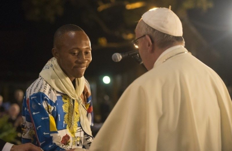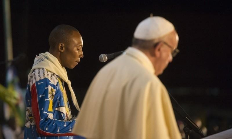 Kedves közép-afrikai fiatalok, nagyon boldog vagyok, hogy találkozhattam veletek. Ma megnyitottuk ez a kaput. Ez Isten irgalmasságának a kapuja. Bízzatok Istenben! Mert Ő irgalmas, Ő a szeretet, Ő meg tudja adni nekünk a békét. Ezért említettem az elején az imádságot: szükséges imádkoznunk ahhoz, hogy ellenálljunk, hogy szeressünk, hogy ne gyűlölködjünk, hogy a béke kézművesei lehessünk.