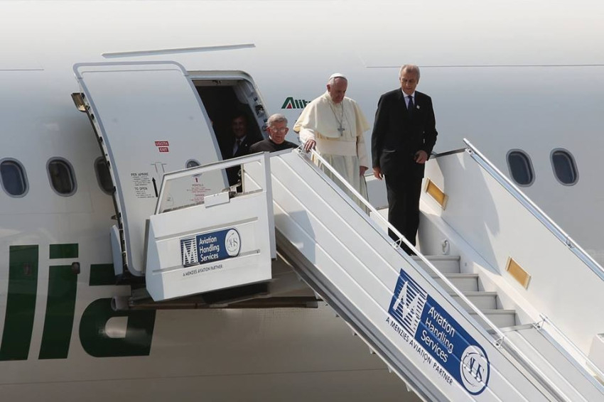 November 29-én, vasárnap délelőtt, az európai időzónával egyidejűleg, tíz óra körül érkezett meg Ferenc pápa a Közép-afrikai Köztársaságba. Két és háromnegyed óra alatt tette meg az 1600 km-es távot Kampala és Bangui repülőtere között. (Szándékosan ment keletről nyugatra, hogy a föld forgásával is időt nyerjen, két órát!).