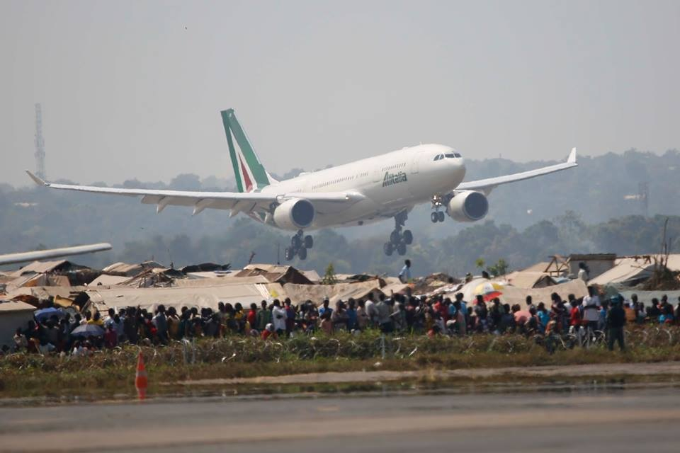 Nézem a leszálló repülőgépet, ahogy egészen alacsonyan elhúz a nyomorúságos sátortábor, a menekültek „otthona” fölött. Igen, el lehet húzni fölötte, ahogy „evilág” teszi, de ő leszáll, és még ma délelőtt az első dolga lesz, a szentmisét is megelőzően!, hogy közéjük menjen. Teszi ezt az irgalomban gazdag Isten nevében, akinek a Fia értünk nyomorúságos szegénnyé lett. Megint csak számok. A belháborúk kitelepítettjei: 440 ezer lélek, ezen kívül 450 ezer lakos menekült a szomszédos országokba. Kiszámolom, az ország húsz százaléka, egyötöde földönfutó! Minden ötödik ember! Hogy bízhattak ezek a közép-afrikai emberek abban, hogy megjön, megérkezik és meglátogat minket!