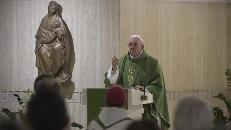 Szent Pálnak a rómaiakhoz írt levelében (Róm 8,31b–39) ma arról olvasunk, hogy semmi sem választhat el bennünket Isten szeretetétől – mondta szentbeszédében Ferenc pápa. – A népek apostola egyenesen gőgösnek, túl magabiztosnak tűnhet, amikor kijelenti: „Sem halál, sem élet, sem angyalok, sem fejedelemségek, sem jelenvalók, sem eljövendők, sem hatalmasságok, sem magasság, sem mélység, sem egyéb teremtmény el nem szakíthat bennünket Isten szeretetétől, amely Krisztus Jézusban, a mi Urunkban van.”