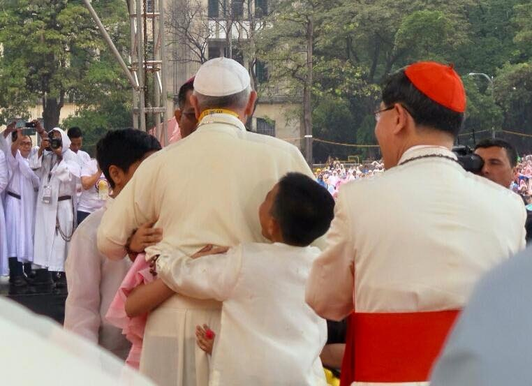 A jelenlévők együtt imádkoztak a huszonhét esztendős Kristel Mae Pasadasért, aki Taclobanban vesztette életét a pápai látogatás előkészületei során, amikor a viharos szél felborított egy állványzatot. Ferenc pápa személyesen találkozott a fiatal önkéntes gyászoló szüleivel.