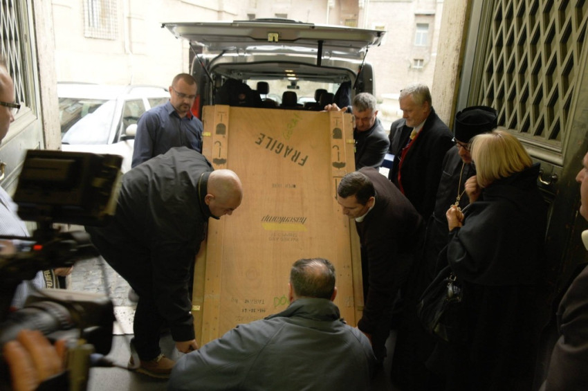 Az ikont a repülőtéren a Szentszék ukrán nagykövete, Tetyána Izevszka és a lengyel nagykövet, Piotr Nowina-Konopka, valamint a Vatikán több képviselője fogadta.