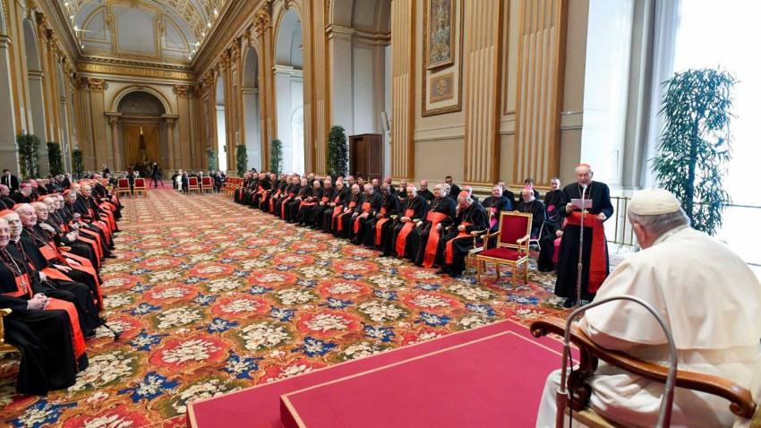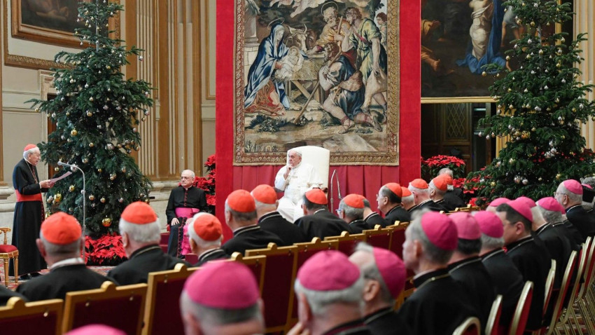 Kedves testvéreim, mindannyiunkkal megtörténhet, hogy elveszünk, mint az a bárányka, vagy elfordulunk Istentől, mint a kisebbik fiú. Ezek olyan bűnök, amelyek megaláztak bennünket, s épp ezért – Isten kegyelméből – képesek voltunk szembenézni velük. De létünk jelen pillanatában azért kell nagy odafigyelést tanúsítanunk, mert mostani életünk formálisan otthon zajlik, az intézmény falain belül, a Szentszék szolgálatában, az egyházi test szíve közepében; s épp ezért eshetünk abba a kísértésbe, hogy azt gondoljuk, biztonságban vagyunk, hogy különbek vagyunk, hogy már nem kell megtérnünk.