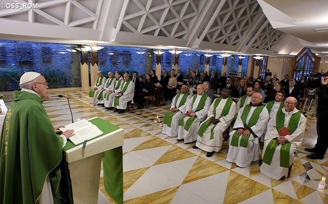 Ferenc pápa a Jelenések könyvéből vett szentleckére – az Úr megrója a laodiceai egyház langyos keresztényeit (vö. Jel 14–22) – építette homíliáját, és rámutatott, hogy ez a „langyosság” nemcsak a kezdeti időkre volt jellemző, hanem a mai keresztényekre is igaz. Az Úr erős szavakat használ, amikor megszidja őket, mondván se nem hidegek, se nem melegek, ezért kiveti őket a szájából.