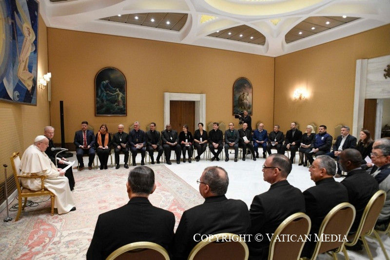 Beszéde végén Ferenc pápa azért imádkozott, Jézus fizesse meg a jelenlévők erőfeszítéseit, a Szentlélek vezesse munkájukat, és a Szent Szűz takarja be őket köpenyével, hogy Máriától megtanulják, hogyan nyújtsanak gondoskodást és védelmet minden embernek.