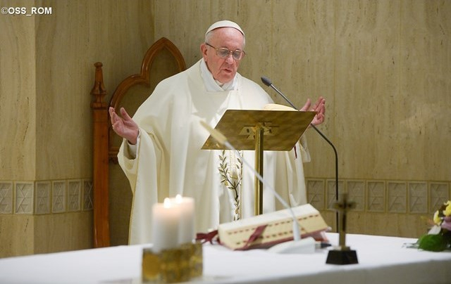 A pápa rámutatott, hogy Isten megbocsátja a bűnt, de a romlottság sebei nehezen gyógyulnak. Dávid király egy lépésre van attól, hogy a romlottság vétkébe essen, de Nátán próféta, Isten küldötte értésére adja a rosszat, amit elkövetett. Ferenc pápa homíliájában Dávid alakjáról szólt, aki bűnös, de szent is (2Sám 15,13–14.30; 16,5–13a).