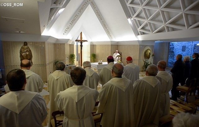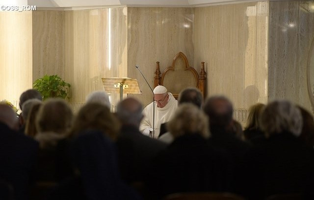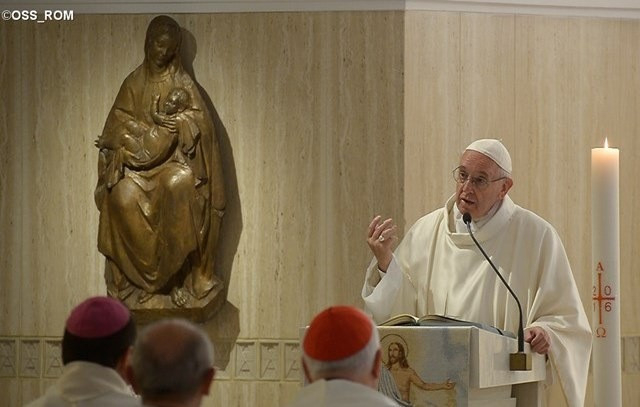 „Az evangélium kettős tanúságtételről beszél: a Szentlélekéről, aki Jézusról tesz tanúságot, és a mi tanúságtételünkről. Mi vagyunk az Úr tanúi, a Szentlélek erejében. Jézus arra hívja a tanítványait, hogy ne botránkozzanak meg, mert a tanúságtétel magával hozza az üldöztetést: a fecsegés, a szószátyárkodás apró üldöztetésétől, a kritikától kezdve egészen a nagy üldöztetésekig, amivel tele van az egyház története, hiszen a tanúságtétel juttatta a keresztényeket a börtönbe vagy életük teljes odaadására. Jézus azt mondja nekünk – folytatta a pápa –, hogy ez az üldöztetés ára. Kiűznek a zsinagógákból benneteket, sőt eljön az óra, amelyben bárki, aki megöl benneteket, azt hiszi, hogy az igaz Istennek tesz szolgálatot ezzel. A keresztény ember a Lélek erejében tanúságot tesz arról, hogy az Úr él, hogy az Úr köztünk van, hogy ő velünk együtt ünnepli halálát és feltámadását, mindahányszor az oltárhoz járulunk. A keresztény is tanúságot tesz a Lélek erejében a hétköznapi életben, a saját tetteivel. Ez a keresztények állandó tanúságtétele. De sokszor ez a tanúságtétel támadást és üldöztetést vált ki.”