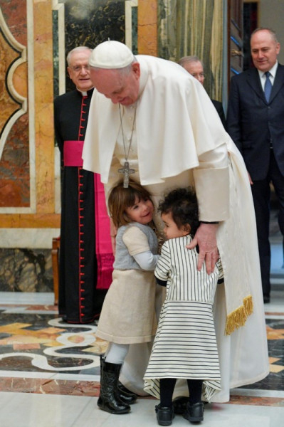 A pápa köszönetet mondott az egybegyűlteknek, akiket így nevezett: „a remény magvai”. „Az Alapítvány támogatásával olyan jelzéseket adtok a társadalomnak, amelyek szembe szállnak a széles körben elterjedt kiselejtezés kultúrájával. Ehelyett kiselejtezett kövekkel igyekeztek házat építeni, ahol a társadalmi barátság és a testvériség légköre uralkodik.” „Semmi sem egyszerű és semmi sem rózsaszín, ezt tudjuk! – jegyezte meg a pápa. – Mindannyiunknak megvannak a maga korlátai, hibái és bűnei.” Ugyanakkor rámutatott: „Isten irgalma nagyobb, és ha testvérnek fogadjuk el egymást, megbocsát nekünk, és segít továbblépni.”