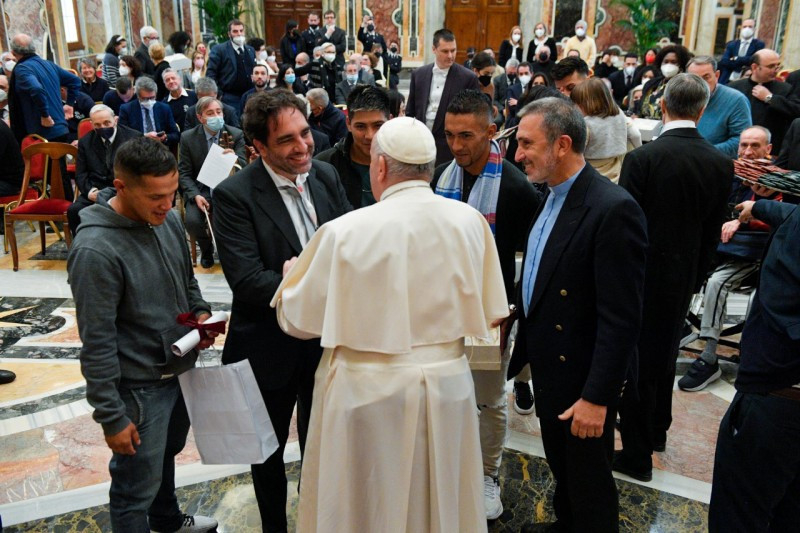 Az audiencián a pápa egyenként köszönetet mondott mindazoknak, akik részt vesznek a projektekben és a tevékenységekben: beleértve a szabás mesterségét elsajátító menekülteket is, a soknemzetiségű zenekar zenészeit, az egyedülálló anyákat gyermekeikkel, valamint azokat a fogyatékkal élőket, akik hegedűket és az eucharisztia ünneplésére ostyákat készítenek. A pápa továbbá üdvözölte három lombardiai börtön fogvatartottait és dolgozóit – a fogvatartottak szintén az ostya-, hegedű- és borkészítésben vesznek részt.
