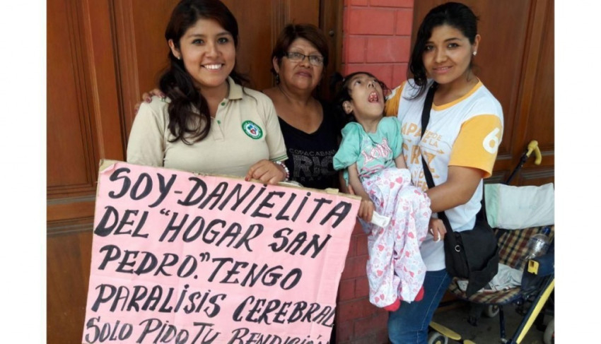 Danielita 15 éves, de egészségi állapota miatt folyamatos ellátásra szorul. A Hogar San Pedrót a Szent Apostolok Misszionáriusai Kongregáció tartja fenn, 8 kiskorút és 21 felnőttet vesznek körül gondoskodó szeretetükkel.