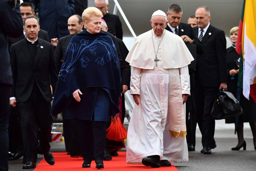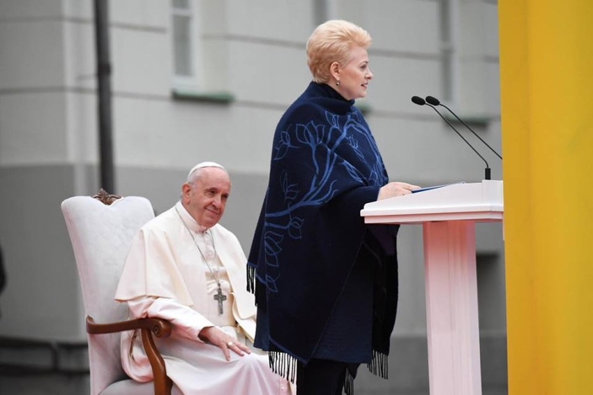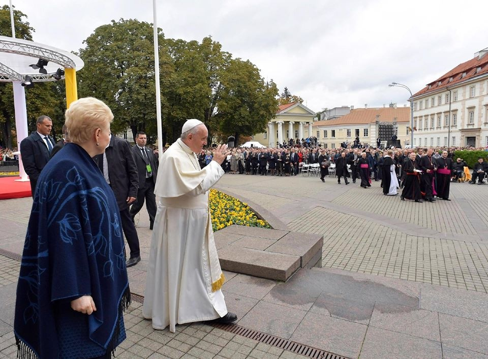 „Örömmel és reménységgel kezdem meg litván földön a balti országokat felkereső zarándokutamat” – kezdte a litván politikai élet vezetőihez intézett beszédét Ferenc pápa. II. János Pál pápát idézte: „Litvánia csendes tanúja a vallásszabadság iránti szenvedélyes szeretetnek” (1993. szeptember 4.).