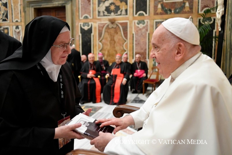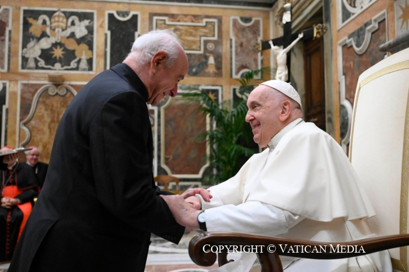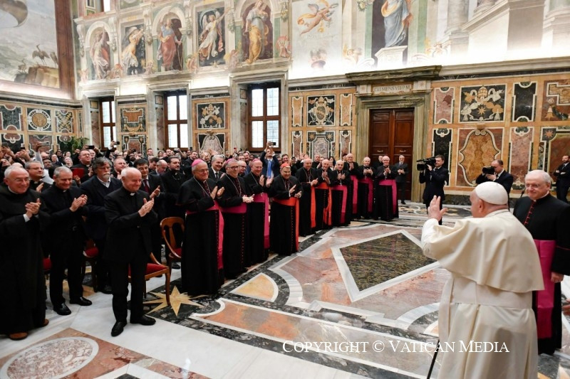 A Szentatya az audiencián üdvözölte Marcello Semeraro bíboros prefektust, az elöljárókat, a posztulátorokat, Vincenzo Paglia érseket; majd az életszentség közösségi dimenziójáról osztotta meg velük gondolatait. Megköszönte a Gaudete et exultate kezdetű apostoli buzdítás kommentárját, melyet a dikasztérium adott ki Ferenc pápa péteri szolgálatának tizedik évfordulója alkalmából. A kötetben megjelent gondolatok remélhetőleg sokaknak segítenek jobban megérteni az életszentségre szóló egyetemes meghívást.