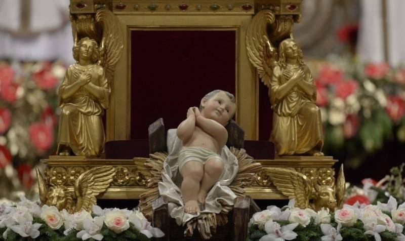 A Szent Péter tér közepén épített betlehemben éjfélkor helyezik el a Gyermek Jézus szobrot, amelyet egy vatikáni dolgozó gyereke tesz be a jászolba. A betlehem idén az észak-olaszországi Trentino ajándéka, a mellette álló 25 méter magas fenyőfa Bajorországból érkezett.