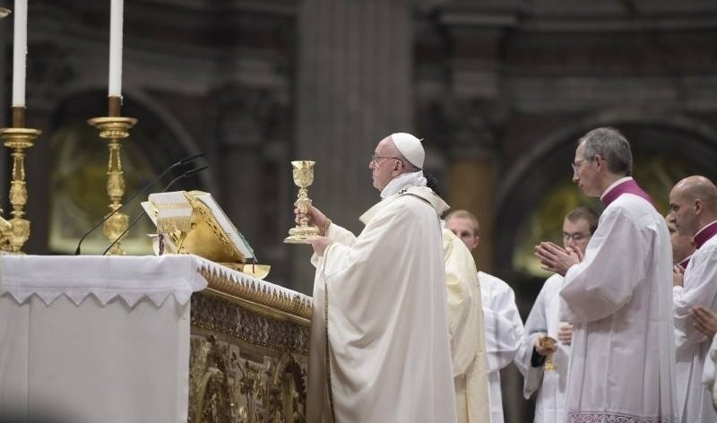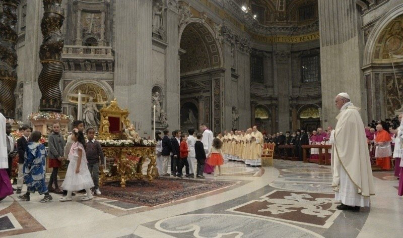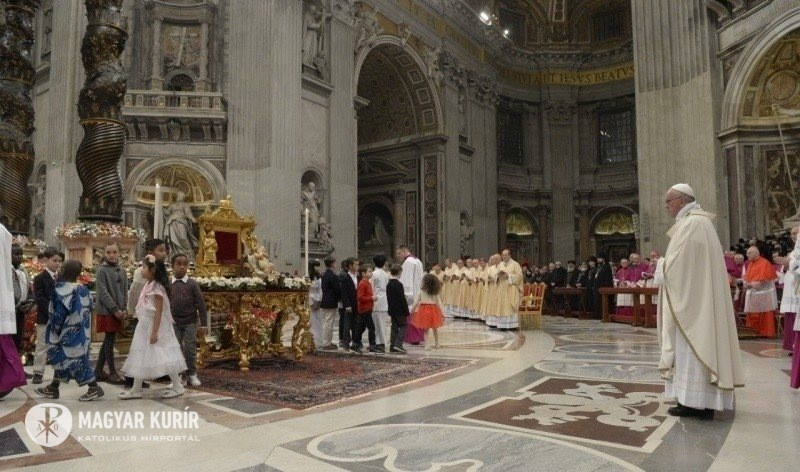 Ferenc pápa a karácsony vigíliájának ünnepi szentmiséjét este fél tíztől mutatta be Rómában a Szent Péter-bazilika katedraoltáránál. Az eredetileg éjfélkor bemutatott misét II. János Pál pápaságának utolsó éveiben hozták korábbra.