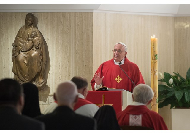 Ferenc pápa a Szent Márta-ház kápolnájában tartott hétfő reggeli szentmise homíliájában a kezdőimádságra utalt és arra emlékeztetett, hogy „az Úr a vértanúk vérével termékennyé tette Róma Egyházának első hajtásait” – tájékoztat a Vatikáni Rádió.
