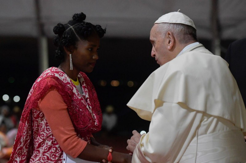 Köszönöm, Rova Sitraka és Vavy Elyssa, hogy megosztottátok mindannyiunkkal útkeresésetek, célkitűzéseitek és az előttetek álló kihívások történetét. Milyen jó találkozni két ilyen fiatallal, akiknek élő hite van, akik mozgásban vannak! Jézus mindig kereső szívvel ajándékoz meg, útnak indít, mozgásba hoz. Ha növekedni akar a vele való barátságban, Jézus tanítványa nem maradhat mozdulatlan, aki csak panaszkodik és önmagát nézi. Mozdulnia, cselekednie kell, el kell köteleződnie, annak biztos tudatában, hogy az Úr támogatja és kíséri ezen az úton.