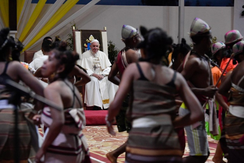 Közösségben, vagyis együtt tanulhatjuk meg felismerni a kis hétköznapi csodákat, ahogyan azt is, ami arról tanúskodik, milyen jó Jézust követni és szeretni. És ez gyakran közvetett módon történik, mint a szüleid esetében, Vavy, akik bár két különböző törzshöz tartoznak, megvannak a maguk szokásai és hagyományai, kölcsönös szeretetüknek köszönhetően mégis le tudtak győzni minden próbatételt és különbözőséget, és szép utat tudtak mutatni nektek, amelyen járhattok. Egy utat, amely igazolást nyer minden alkalommal, amikor megajándékoznak benneteket a föld gyümölcseivel, hogy ajánljátok fel az oltáron. Milyen nagy szükség van az ilyen tanúságtételekre! Vagy mint a nagynénéd és a hitoktatók, a papok, akik kísérték és megtartották őt a hit felé vezető úton. Minden hozzájárult ahhoz, hogy létrehozza és bátorítsa az igeneteket. Mindegyikünk fontos, mindenkire szükség van, és senki nem mondhatja: „nincs szükségem rád”. Senki nem mondhatja: „nekem nincs szükségem rád”, vagy „nem vagy része ennek a szeretettervnek, amelyet az Atya álmodott, amikor megteremtett bennünket”.