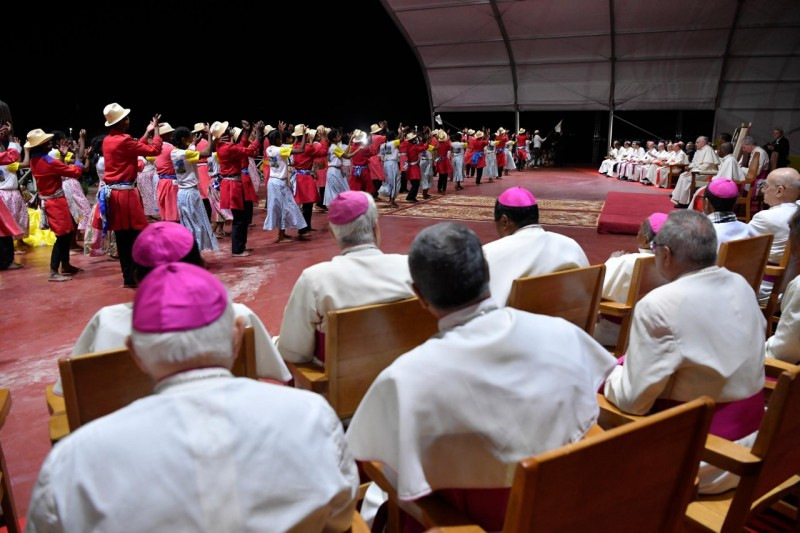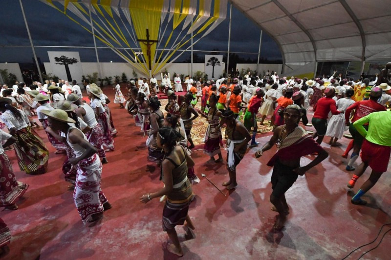 Köszönöm, érsek úr, a köszöntő szavait. Köszönöm nektek, kedves fiatalok, hogy ennek a gyönyörű szigetnek minden részéről eljöttetek, annak ellenére, hogy sokatok számára mennyi erőfeszítéssel, nehézséggel járt ez. Mindenesetre itt vagytok! Nagy öröm számomra, hogy veletek lehetek ezen az imavirrasztáson, amelyre az Úr Jézus hív minket. Köszönöm a népdalokat és a táncokat, amelyeket oly nagy lelkesedéssel mutattatok be – nem tévedtek, akik azt mondták nekem, hogy különleges öröm és lelkesedés él bennetek!