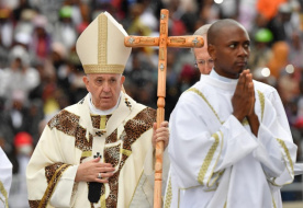 Egy nagy család vagyunk – nyugodjatok meg, mindjárt befejezem, mert hideg van… (nevetnek) – és felfedezhetjük, kedves fiatalok, hogy van egy Anyánk: Madagaszkár védelmezője, Szűz Mária. Mindig megdöbbentett a fiatal Mária igenjének ereje – fiatal volt, mint ti. A „legyen nekem a te igéd szerint” ereje, ahogy az angyalnak mondta. Nem egy csak úgy kimondott igen volt: „na jó, lássuk csak, mi történik”. Ő igent mondott, mellébeszélés nélkül. Azoknak az igenje ez, akik cselekedni akarnak, akik készek kockáztatni, akik mindent bele akarnak adni, pedig nincs más biztos pontjuk, mint annak bizonyossága, hogy egy ígéret hordozói. Az a názáreti lány most az az Anya, aki virraszt a gyermekei felett, akik gyakran fáradtan, szükséget szenvedően járják az élet útjait, de akik vágynak rá, hogy a remény fénye ne aludjon ki. Ezt szeretnénk Madagaszkár számára, mindannyiatok és a barátaitok számára is: hogy ne aludjon ki a remény fénye. Anyánk látja a fiataloknak ezt a népét, akit szeret, akik keresik őt, úgy is, hogy csendet teremtenek a szívükben, pedig nagy zaj van ott, sok beszélgetés, szórakozottság, ami kíséri az útjukat; és fohászkodnak hozzá, hogy ne aludjon ki a remény (vö. Christus vivit, 44–48.).