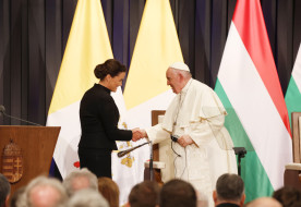 A delegáció a pannonhalmi Szent Márton-bazilika 800. évfordulójára készült Pannonhalmi Bencés Főapátság emlékérme arany próbaveretét adta át a Szentatyának az idei szentév alkalmából.